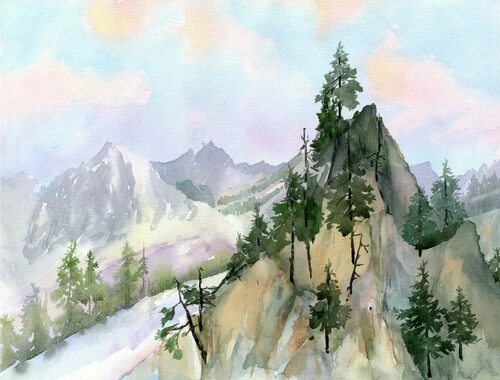 Горы рисунок акварелью - это возможность погрузиться в волшебный мир горных пейзажей и почувствовать их величие. Акварельная техника поможет передать их красоту и привнести нежность и легкость в ваш интерьер.