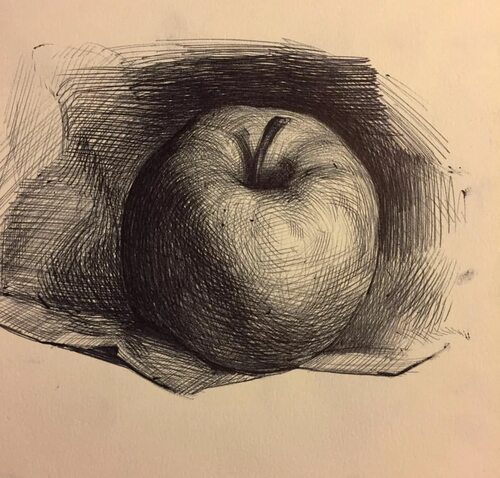 Шаг 1: Начните с легкого натискания карандаша на яблоко. Держите карандаш под небольшим углом и проводите штрихи в одном направлении. Таким образом, вы создадите первый слой штрихов.