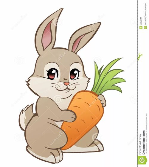1. Взрослая зайка, держащая большую морковку в лапках.