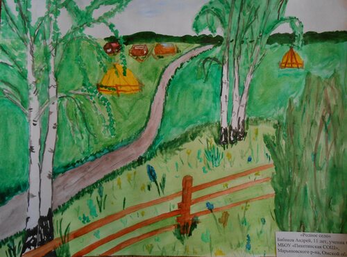 Но сельская жизнь не только об архитектуре. Она пропитана природой, которая окутывает все вокруг своим великолепием. Рисунки родного села передают красоту зеленых полей, пестрые цветочные поляны и живописные реки. Они позволяют нам увидеть краски и оттенки, которые так часто ускользают от нашего взгляда в городской суете.