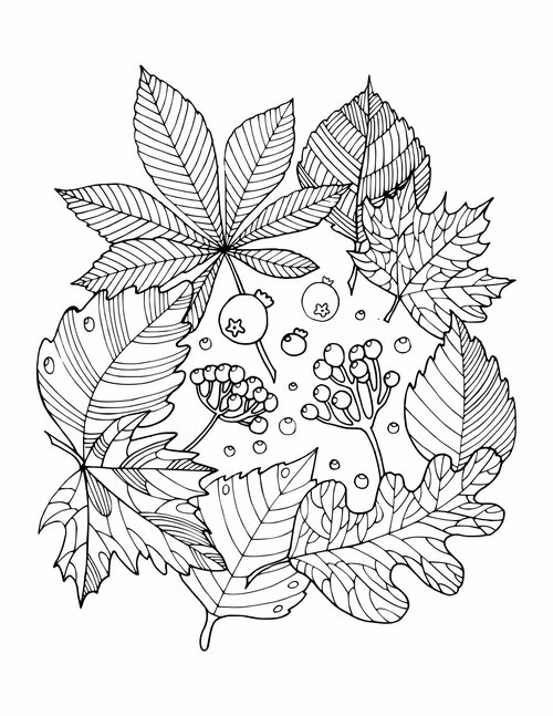 Ниже представлены несколько фотографий готовых раскрасок с осенним букетом. Выберите ту, которая вам больше всего понравилась, и попробуйте создать похожую совместно с вашим ребенком.