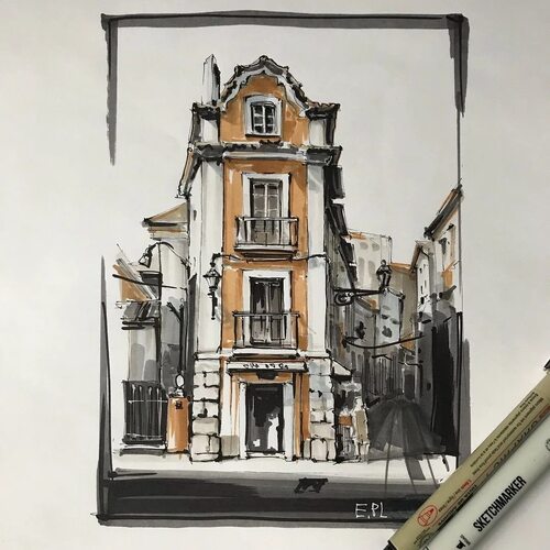 Примеры архитектурного скетчинга маркерами
