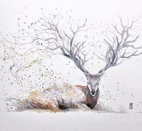 Олень - изящное и величественное существо, которое часто становится объектом вдохновения для художников. Акварель - одна из самых популярных техник, в которой оленей придают особую красоту и эстетику.