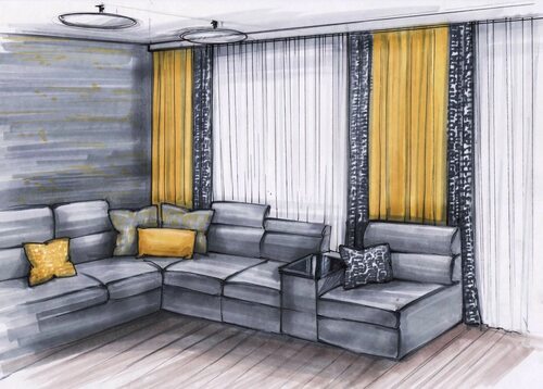 Скетчинг шторы в интерьере