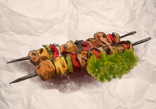 Некоторые художники предлагают нам реалистичные рисунки шашлыка, где каждая деталь тщательно прорисована. Вы можете увидеть сочное мясо на шампурах, кусочки овощей и даже мельчайшие детали гриля, которые делают это изображение таким реалистичным.