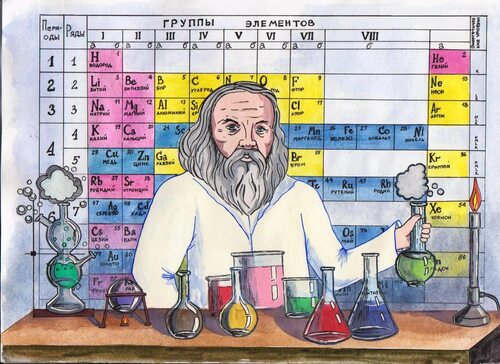 Менделеев – известный русский химик и ученый, создатель периодической системы элементов. Его научные достижения и вклад в науку вдохновляют многих художников на создание рисунков на эту тему.