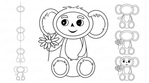 После завершения карандашного эскиза перейдите к созданию внешних контуров. Используйте черную ручку или маркер, чтобы подчеркнуть основные элементы Чебурашки.