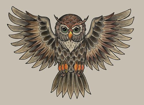 3. Иллюстрации сов с расправленными крыльями в детском стиле