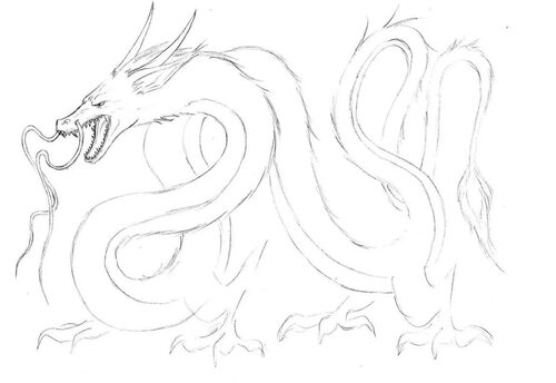 Классический китайский дракон имеет длинное тело, гребень, чешуйчатую кожу и усмешку на лице. Он изображается с змееподобным телом, четырьмя лапами и головой, похожей на льва. Этот вид дракона является наиболее распространенным и может быть отличным вариантом для срисовки.