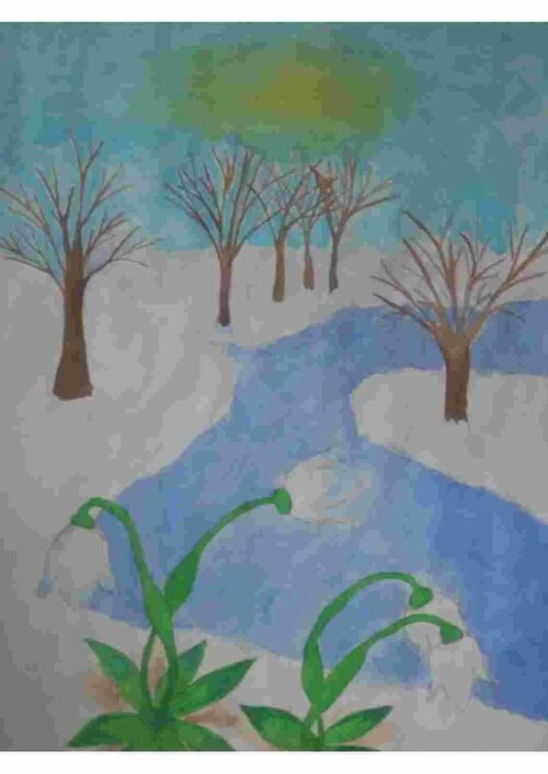 Рисунки детей показывают, как природа просыпается после зимней спячки. Они изображают распускающиеся почки на деревьях, покрытые зеленью луга и прыгающих зайцев. Дети с удовольствием рисуют все знакомые символы весны и делятся своим видением с нами.