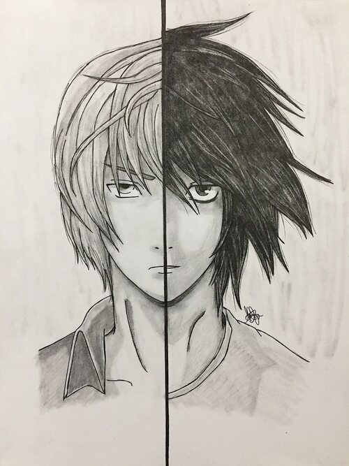 Ягами Лайт и Эл рисунок