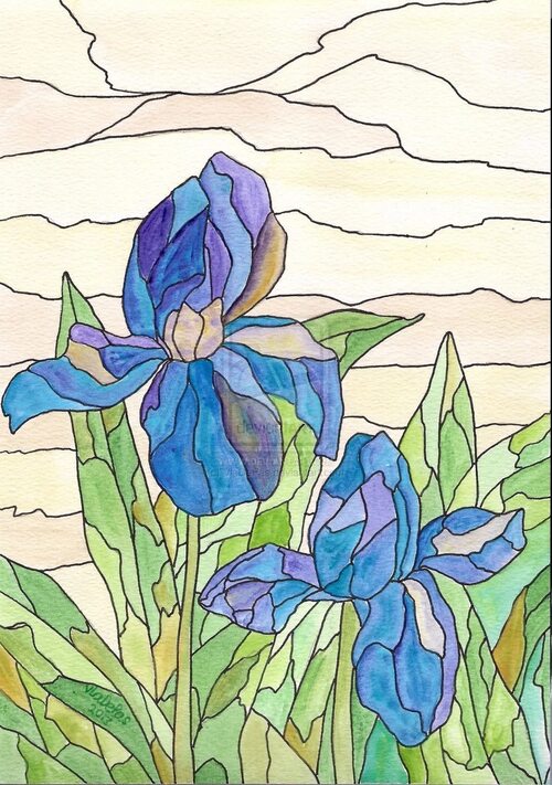 Процесс создания витражного рисунка акварелью включает несколько этапов: