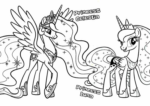Раскраска - это прекрасный способ развития творческих навыков у детей. Селестия и Луна, персонажи популярного мультсериала "Мой Маленький Пони", станут отличным выбором для раскрашивания.