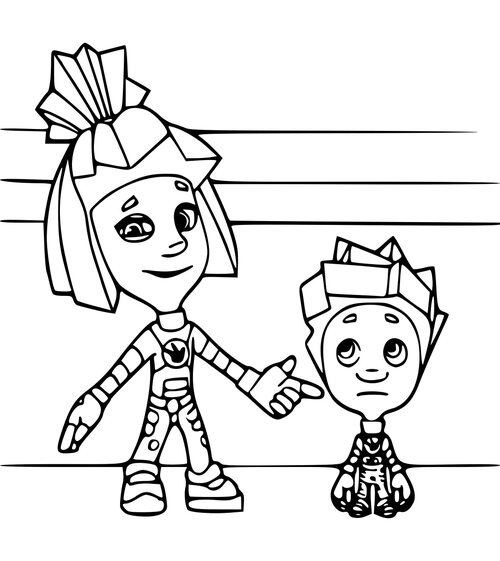 Фиксики раскраска для детей Симка и Нолик