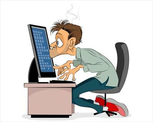 Начнем с реалистических рисунков, которые передают все детали и оттенки этой сцены. Вы увидите мужчину за компьютером в разных позах и с разными выражениями лица. Возможно, вы сами узнаете себя в одном из этих изображений.