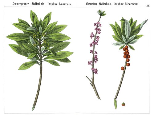 Волчеягодник обыкновенный Ботаническая иллюстрация