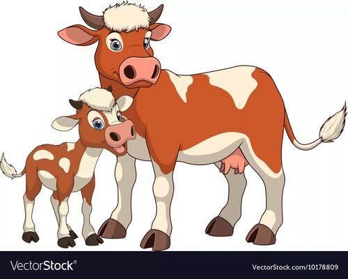 Далее представлены несколько рисунков, на которых изображена корова вместе с ее теленком.