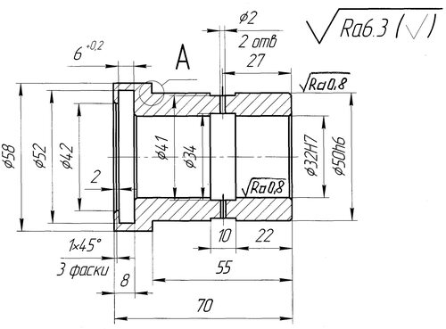 Гильза блока цилиндров КАМАЗ 740 чертеж
