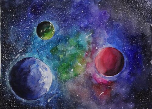 Вот и все! Теперь у вас есть потрясающий космический рисунок, созданный с помощью гуаши. Не забудьте поделиться им с друзьями и насладиться результатом вашего творчества.