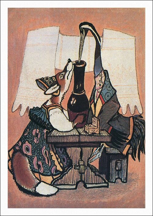 "Лиса и заяц" художник: Таубер Виктор Исаевич Росгизместпром, 1956г.