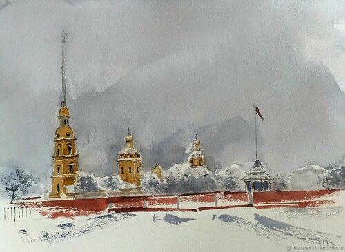 Зимние закаты в Петербурге бывают невероятно красивыми. Рисунок позволяет передать ту атмосферу и магию, которую можно ощутить, наблюдая за закатом над Невой, окрашивающим все в романтические оттенки.