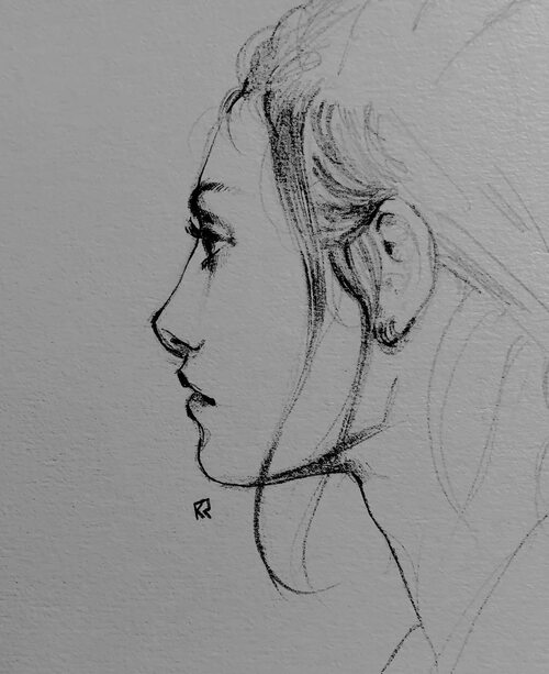 Профильное лицо девушки на рисунке обычно отображает ее нежность и загадочность. Изогнутые линии и тени создают ощущение объема и глубины, придавая портрету особую выразительность.