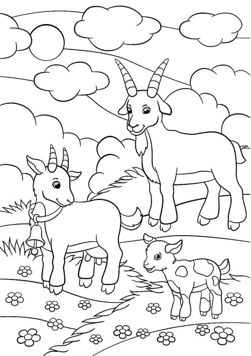 Картинка там где козы гуляют там на лугу для срисовки Раскрашенные