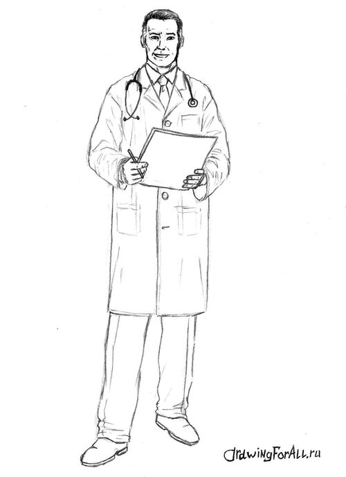 Шаг 1: Начните с эскиза. На бумаге сделайте набросок основных форм и пропорций фигуры врача.