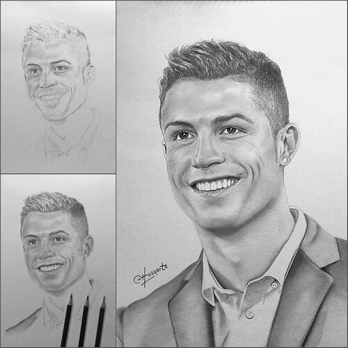 В нашей коллекции вы найдете много удивительных портретов Криштиану Роналду, выполненных талантливыми художниками карандашом. Каждый портрет - это уникальное произведение искусства, которое захватывает его выразительность и индивидуальность.