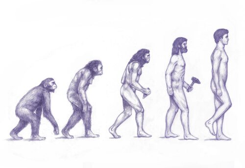 Второе фото отображает развитие человека от древних предков до современного человека. Мы можем увидеть, как изменялись его физические характеристики, такие как форма черепа и телосложение, а также как развивались его интеллектуальные способности.