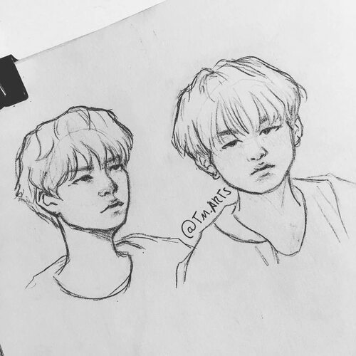 Добро пожаловать в удивительный мир срисовок БТС ТМ Артс! Здесь вы найдете самые красивые и яркие работы талантливых художников, создающих реалистичные портреты участников популярной корейской группы БТС.