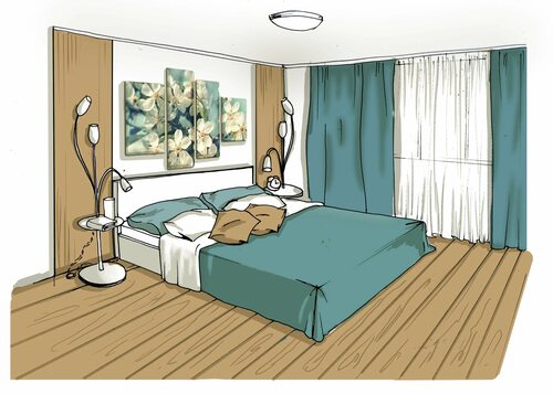 Эскиз интерьера спальни
