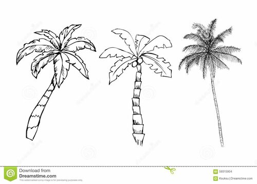 Рисунки трех пальм на пляже