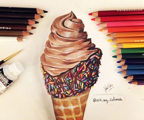 3. Нанесите карандашами разноцветные полосы на поверхность мороженого. Вы можете выбрать любые цвета и создать свой уникальный дизайн.