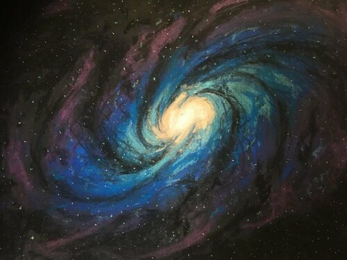 - Использование акварели и мокрого на мокром метода, чтобы создать эффект размытости и глубину галактики.