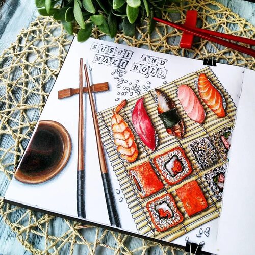 Не забудьте поделиться вашими результатами с друзьями и в социальных сетях. И кто знает, может быть, в будущем вы станете известным художником, специализирующимся на рисовании суши скетч маркерами!