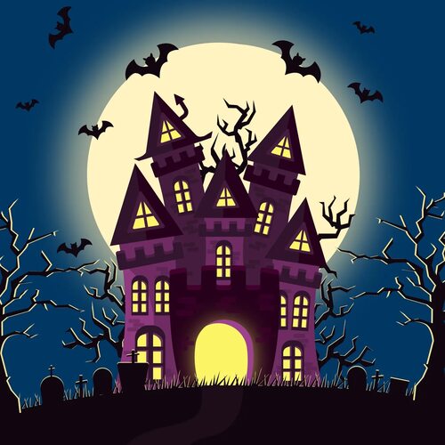 Страшный замок на рисунке словно является порталом в другой мир. Приготовьтесь отправиться в путешествие по заброшенным коридорам и покоящимся призракам, пока не выскользнете из его темного волшебства обратно в реальность.