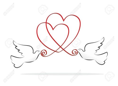 Свадебные голуби на рисунках могут изображаться в разных позах: пара голубей, которая обнимается или целуется, голубь с колечком на ноге, голубь с цветком в клюве и многое другое.
