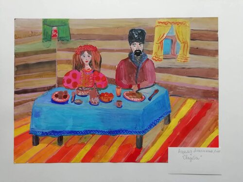 Первый рисунок - изображение казака в национальном костюме, с оружием в руках. Его мужественный взгляд и гордая осанка передают силу и дух казачества. На втором рисунке мы видим казачью каторгу, символизирующую трудности и испытания, с которыми сталкивались казаки в своей истории.