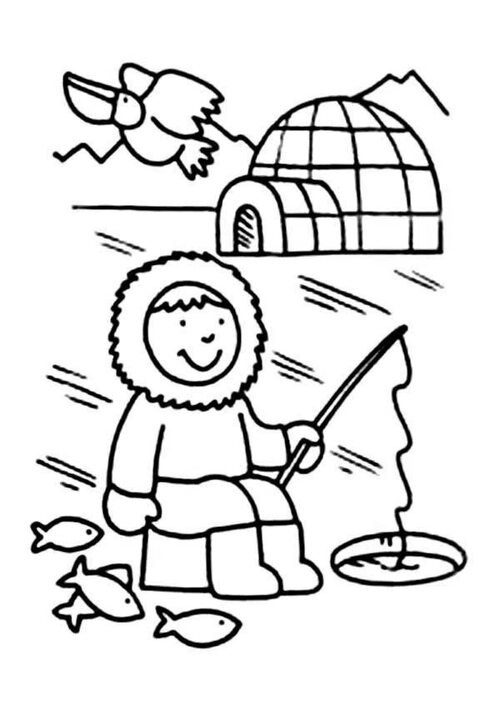 Помимо изображений природы, в раскрасках также присутствуют сцены из повседневной жизни эскимосов. Раскрасьте детали их уникального костюма, традиционные жилища и предметы, которые им помогают выживать в суровых условиях.