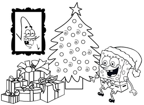Раскраски с Губкой Бобом на Новый Год