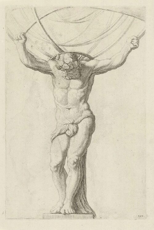 Атланты - это фигуры, которые репрезентуют мужчин сильного телосложения, стоящих на ногах и держащих над собой тяжелые предметы или структуры. Они были вдохновлены греческой мифологией, где Атланты были высокими богами, обязанными нести на своих плечах небесные сферы. Изображения Атлантов можно найти в архитектуре, искусстве и на различных украшениях.