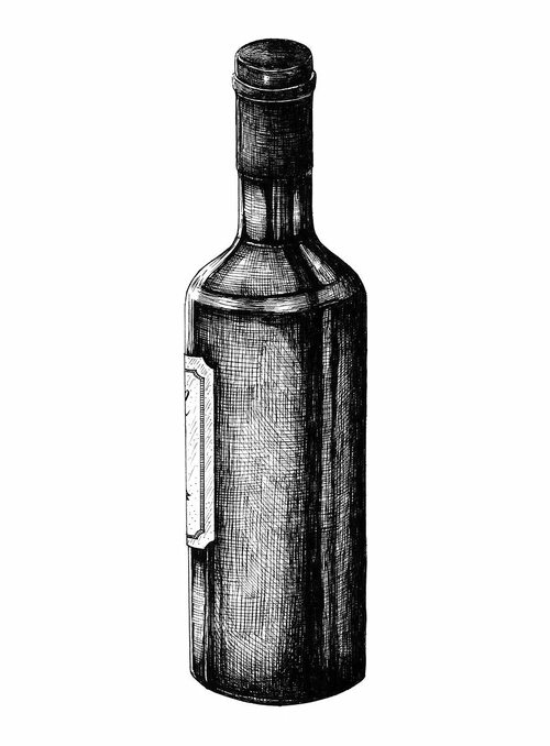 Начнем с простого, но элегантного варианта. Нарисуйте очертания стеклянной бутылки карандашом, обратите внимание на детали и тени, чтобы придать рисунку объем. Добавьте некоторые декоративные элементы, если хотите.