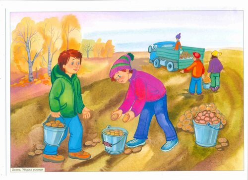 Осень - это время, когда люди активно занимаются различными работами на открытом воздухе. Осенний пейзаж, окрашенный в теплые оттенки, создает неповторимую атмосферу для труда и творчества.