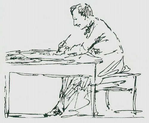 Начинаем нашу коллекцию с классического портрета. На этой иллюстрации вы увидите живописное изображение человека, сидящего за столом. Используя тонкие мазки кисти, художник передает выразительность лица и атмосферу момента. Этот рисунок идеально подойдет для тех, кто ценит классическую эстетику и красоту.