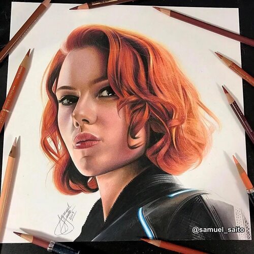 Черная вдова - одна из самых зловещих и загадочных героинь во вселенной Marvel. Ее портреты являются популярным искусством, которое захватывает воображение и вызывает интерес у фанатов.